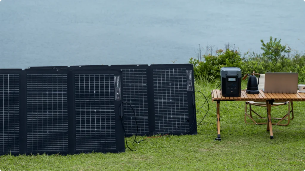 El panel incluye una funda de transporte que se convierte rápidamente en un soporte ajustable, permitiéndote orientar el panel en el ángulo perfecto (30° a 80°) para maximizar la entrada solar.